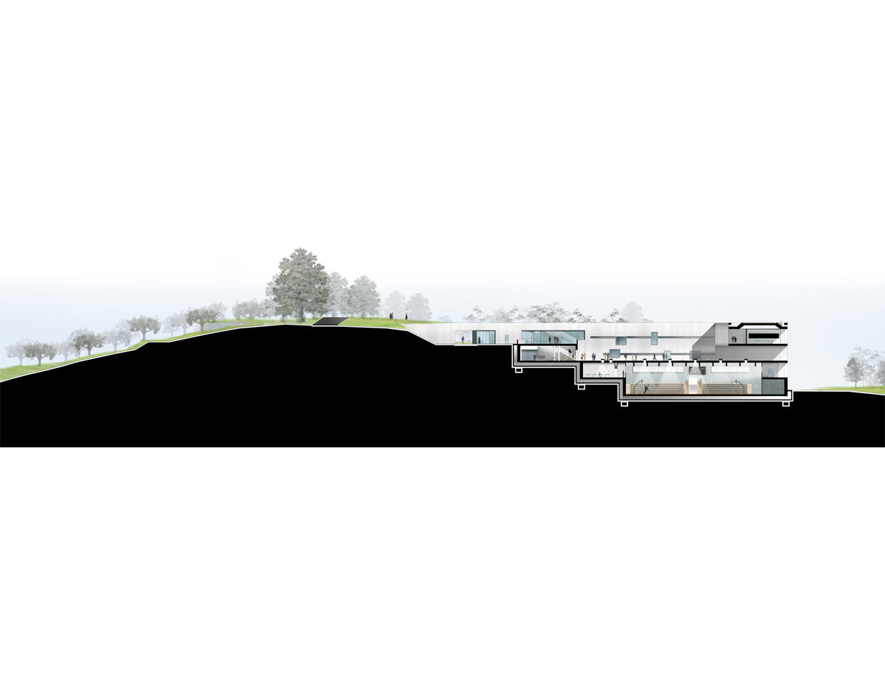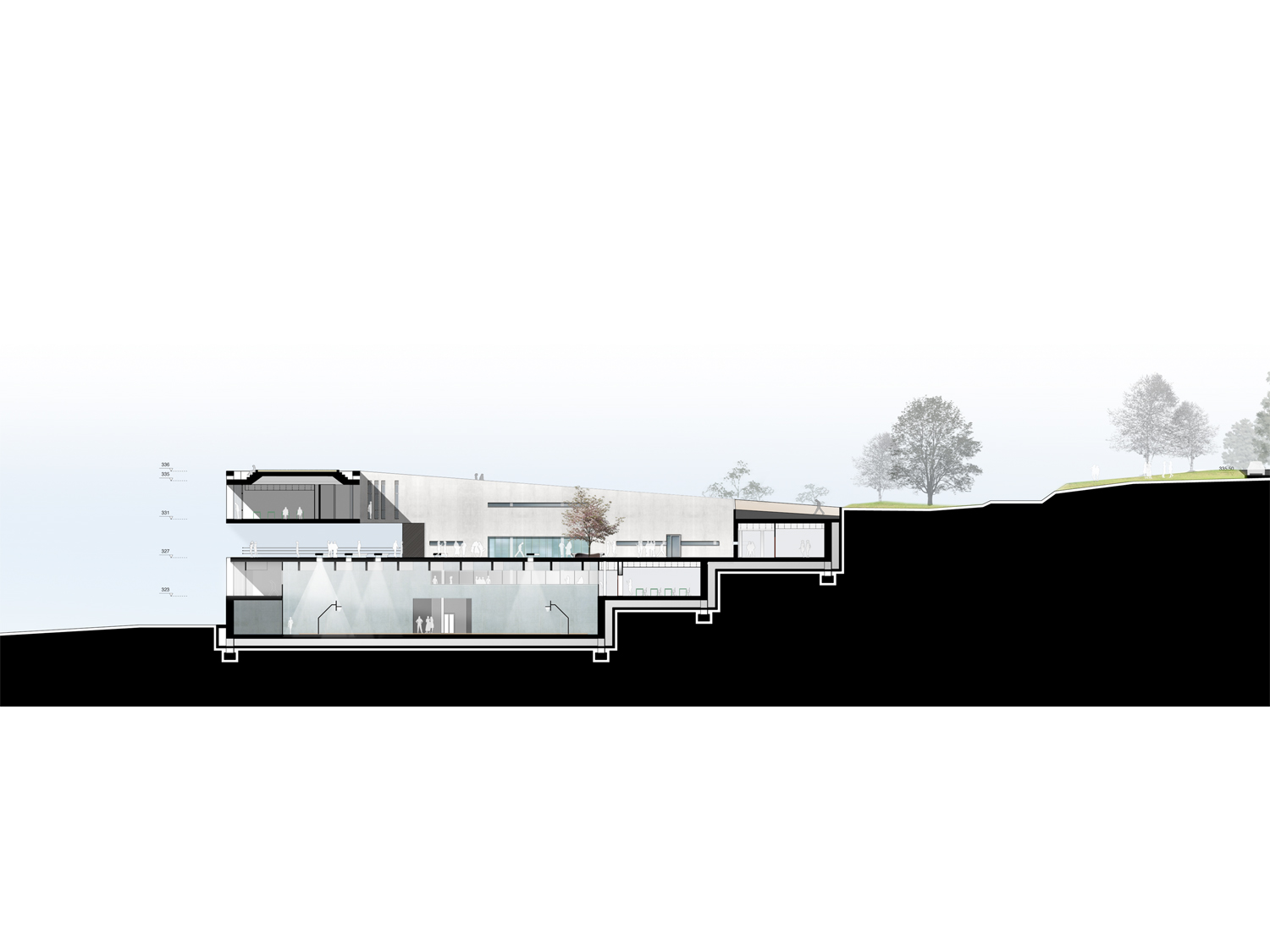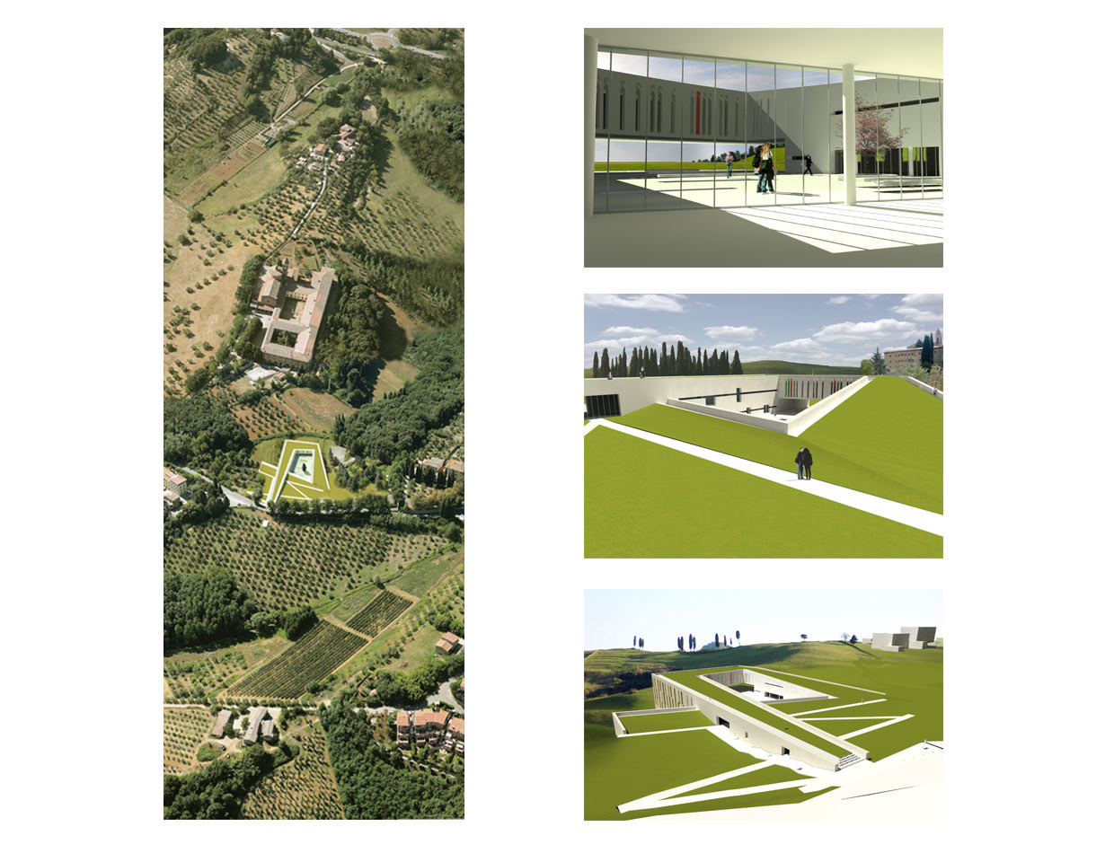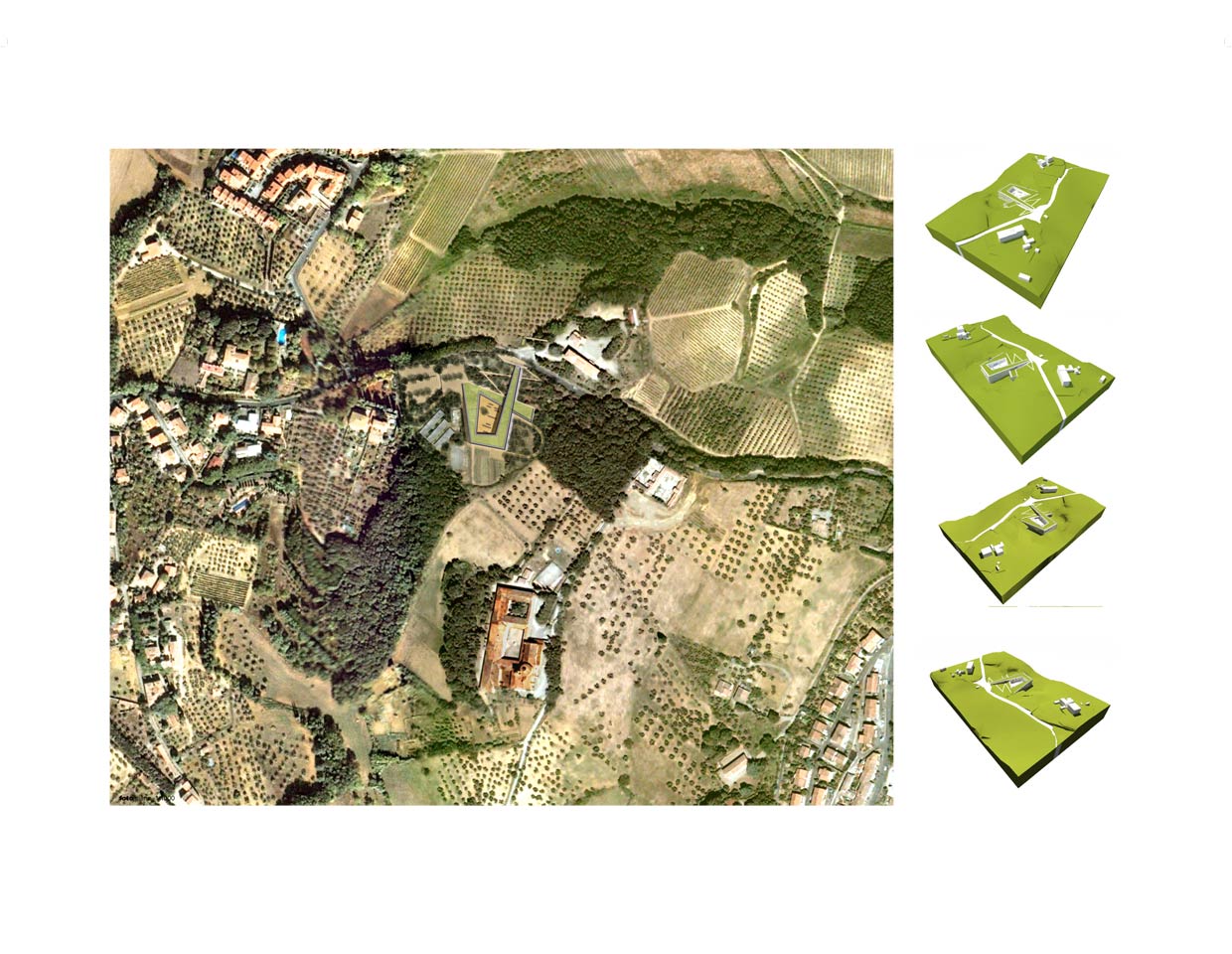 La piazza rialzata si pone come vassoio su cui sono appoggiati i diversi elementi: il parcheggio multipiano disegnato a formare un blocco a corte, un vero e proprio isolato urbano di cui, grazie alla manica stretta (16 m), mantiene la scala e la proporzione; il centro commerciale che chiude su un lato (sud) la corte interna del parcheggio; il blocco del centro direzionale, appoggiato sopra al centro commerciale, che sbalza verso l’angolo tra via Robertelli e via Sciaraffia sottolineando l’accesso pedonale al sistema della piazza e del mercato.
