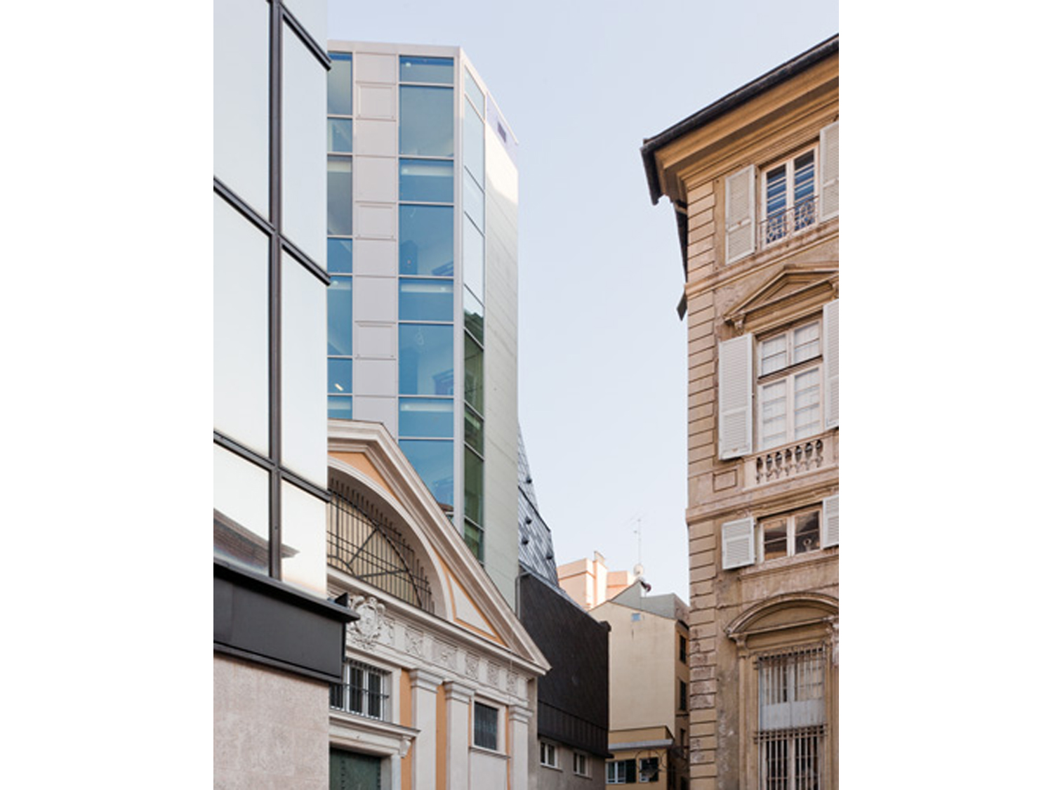 Secondo le indicazioni del nuovo piano regolatore di Genova l’edificio che un tempo ospitava la sede della Casa della giovane doveva essere ridotto nella parte frontale per permettere di migliorare l’illuminazione naturale e la ventilazione della retrostante piazzetta.