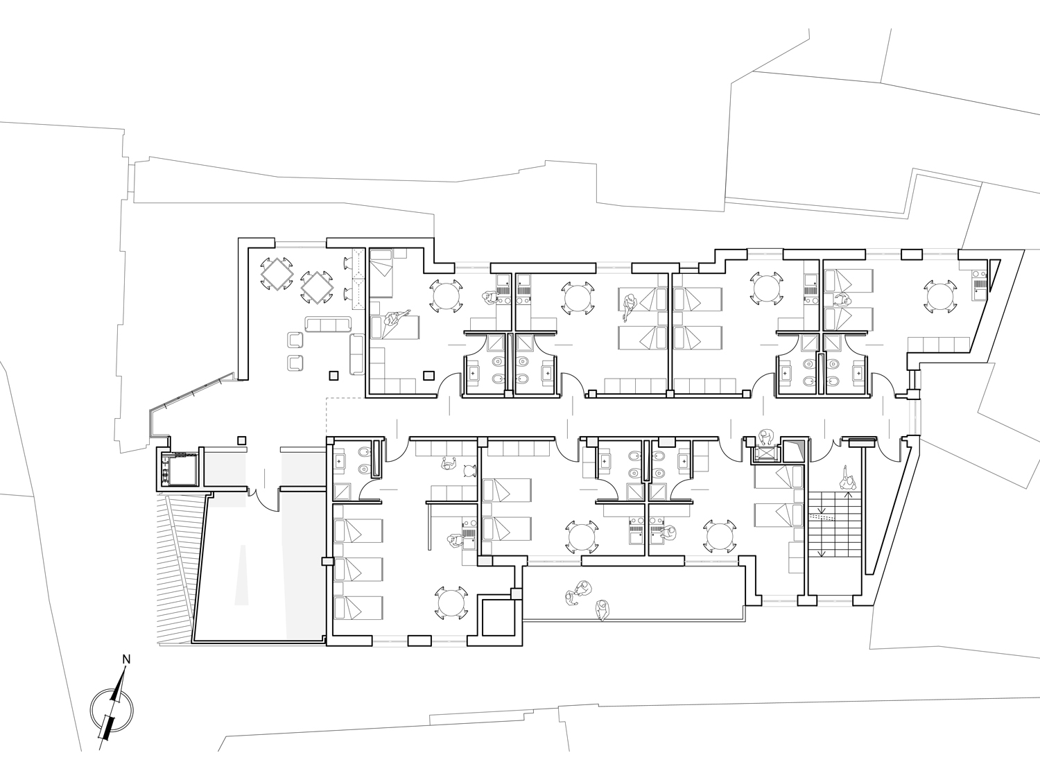 il cambiamento. Ad ogni piano, accettato il ruolo inevitabile del corridoio, le diverse unità si affiancano nel rispetto delle dimensioni suggerite dai regolamenti, dagli usi e di quanto già esisteva.