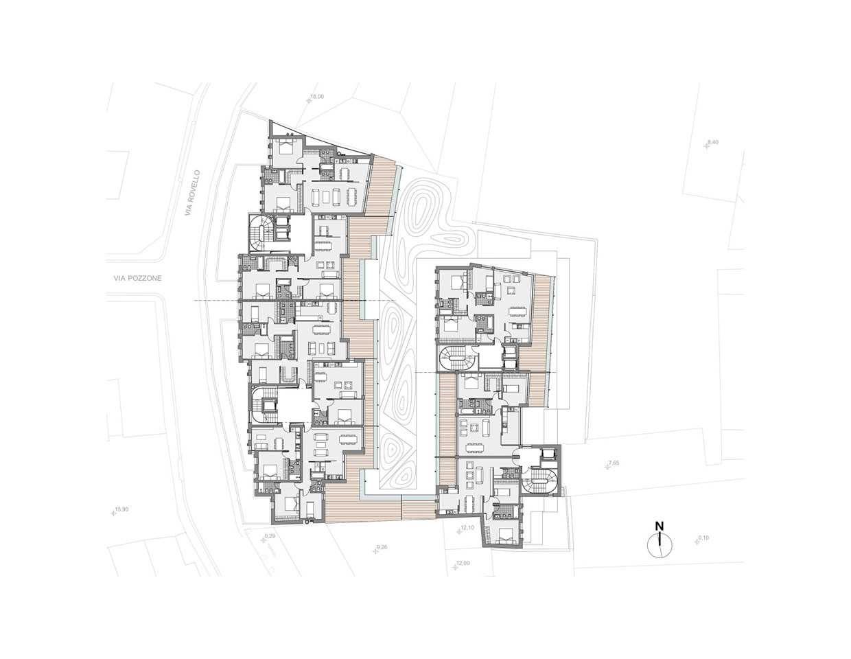 Il progetto prevede la realizzazione di un complesso residenziale in Via Rovello a Milano. I richiedenti hanno concordato di ripartire la volumetria disponibile all’interno di un doppio sistema di stecche parallele a via Rovello.