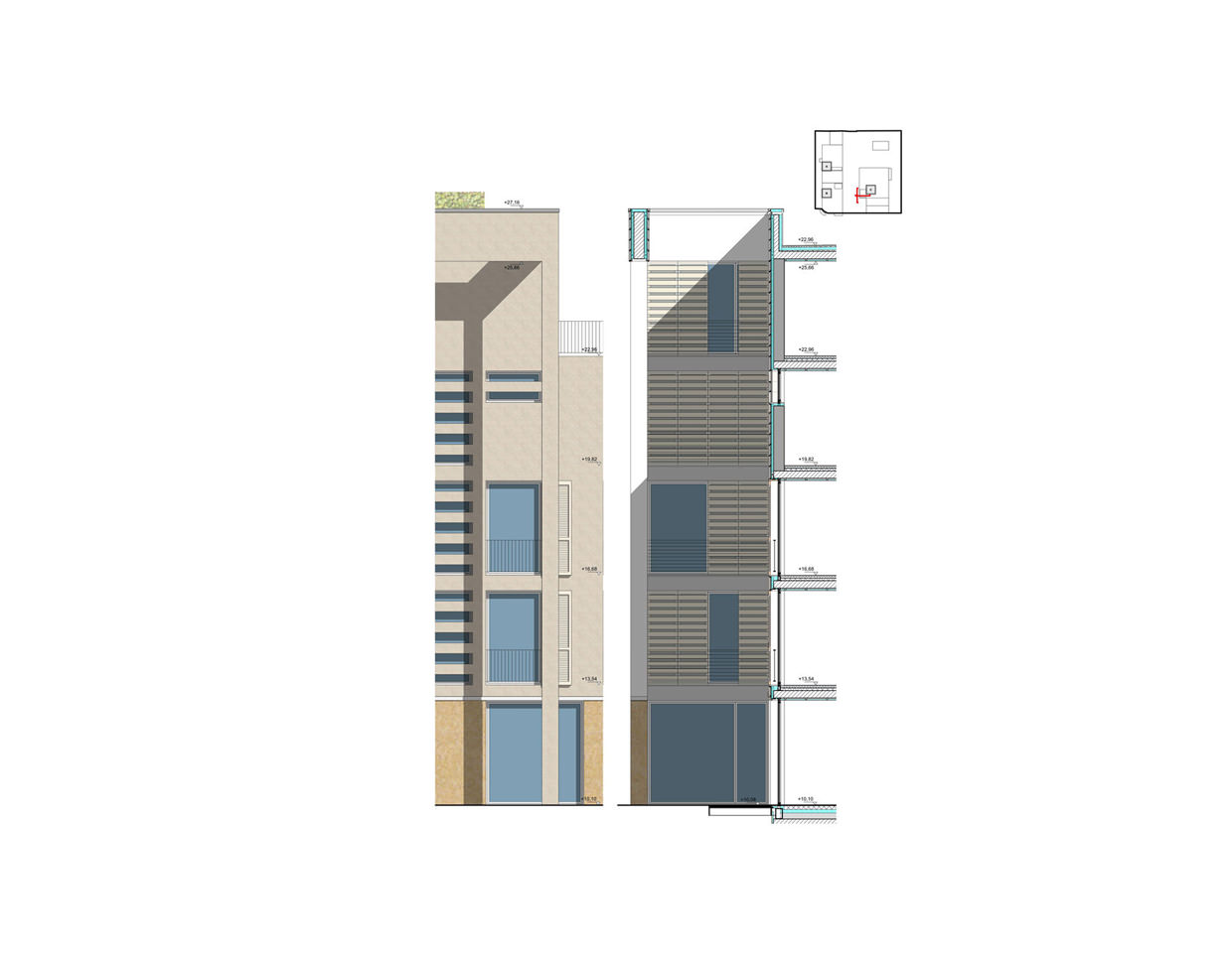 L’incarico si limita alla progettazione esecutiva e direzione lavori di un progetto che aveva già compiuto il proprio iter. In accordo con la proprietà e con gli enti preposti alle autorizzazioni sono state apportate alcune modifiche al partito architettonico dei prospetti.