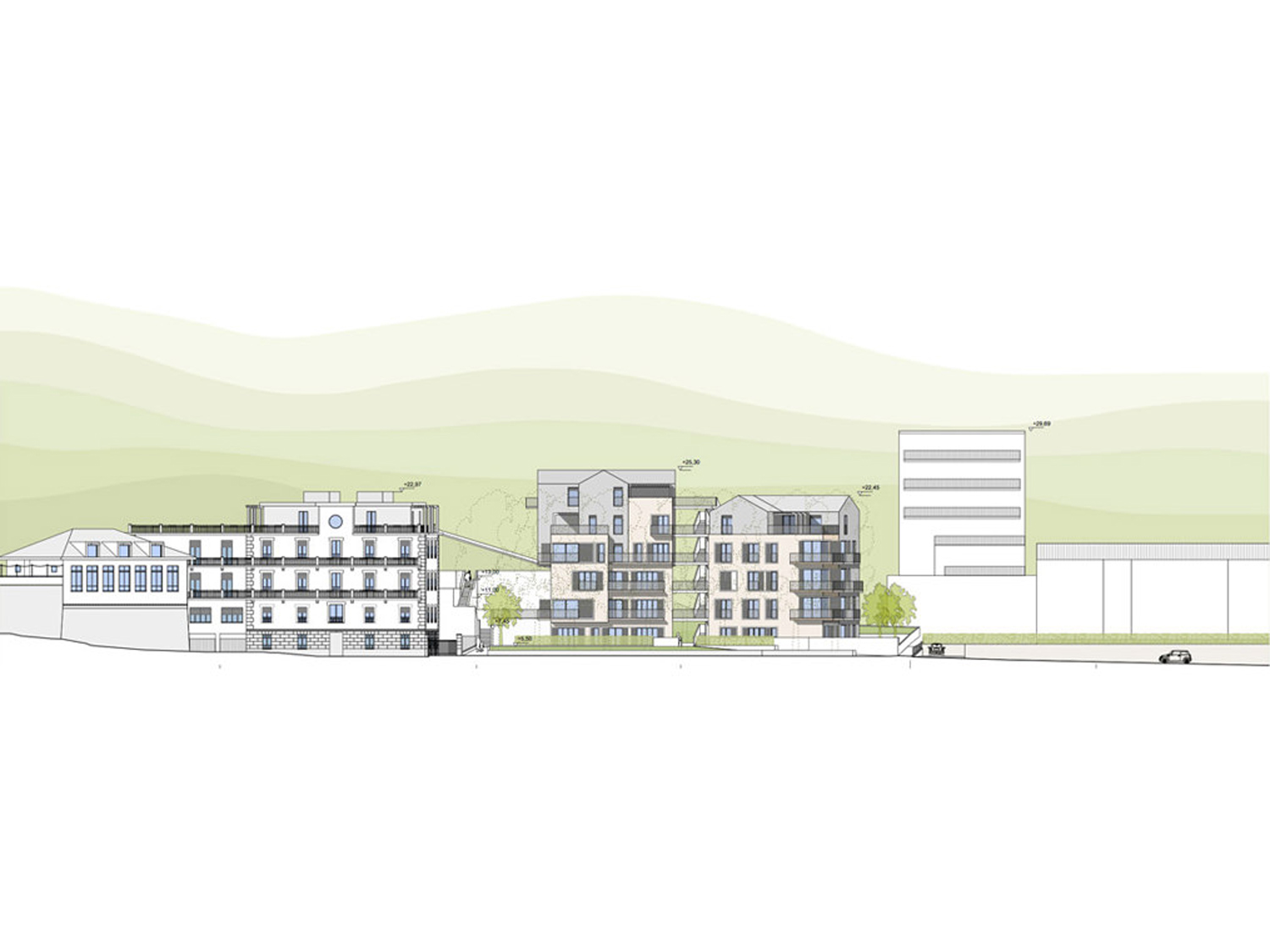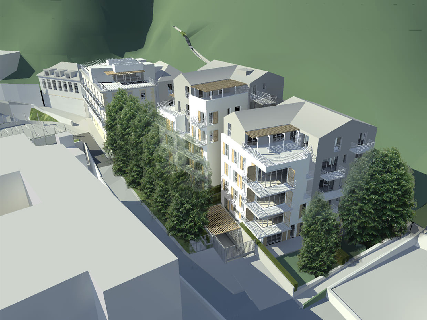 2) Realizzazione di un nuovo intervento residenziale sul sedime dell’attuale parcheggio della colonia, e contestuale realizzazione di un parcheggio pertinenziale interrato.
