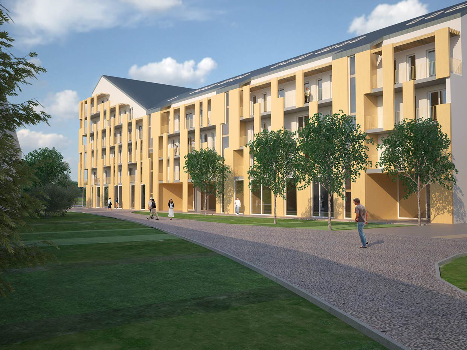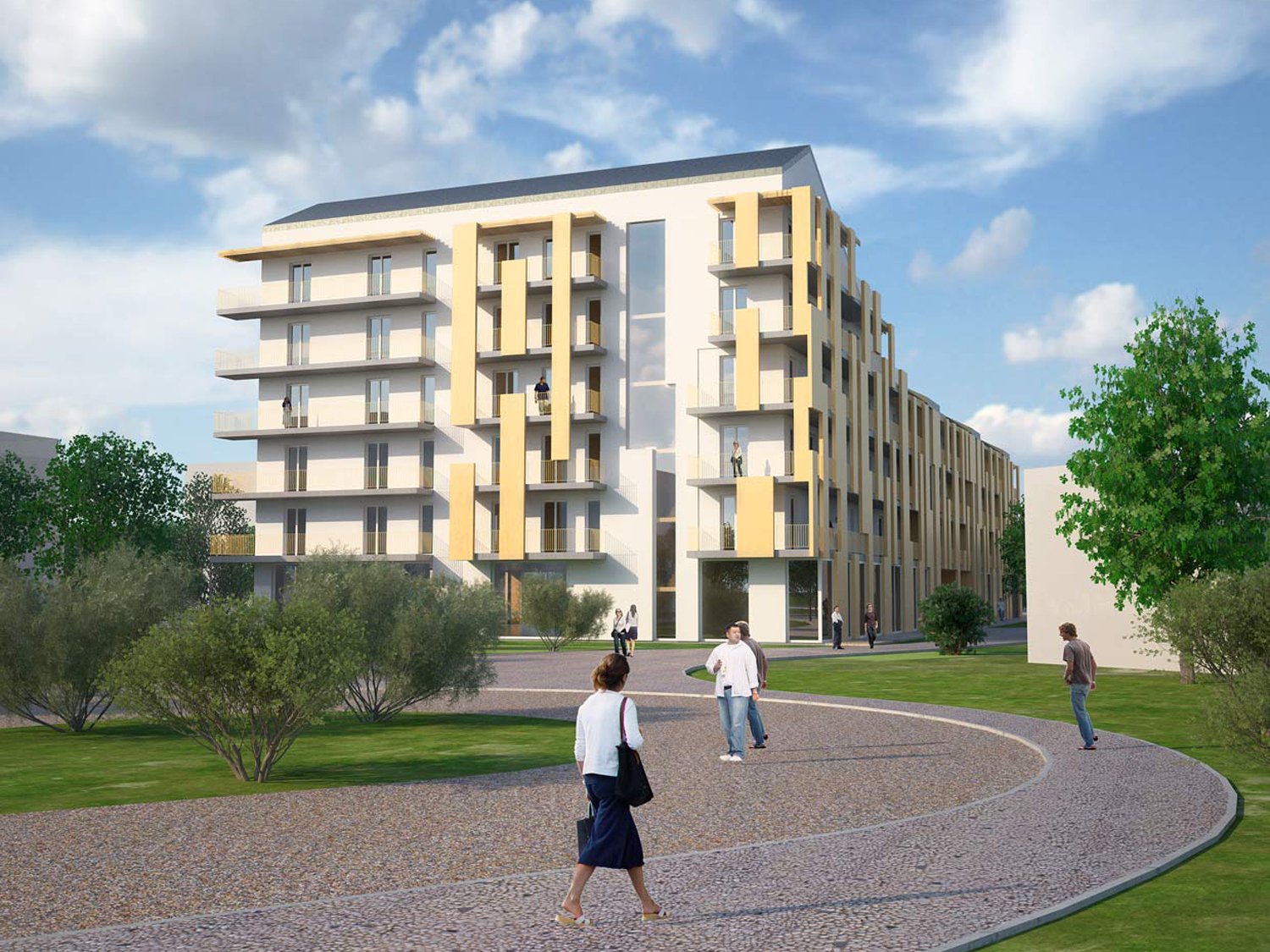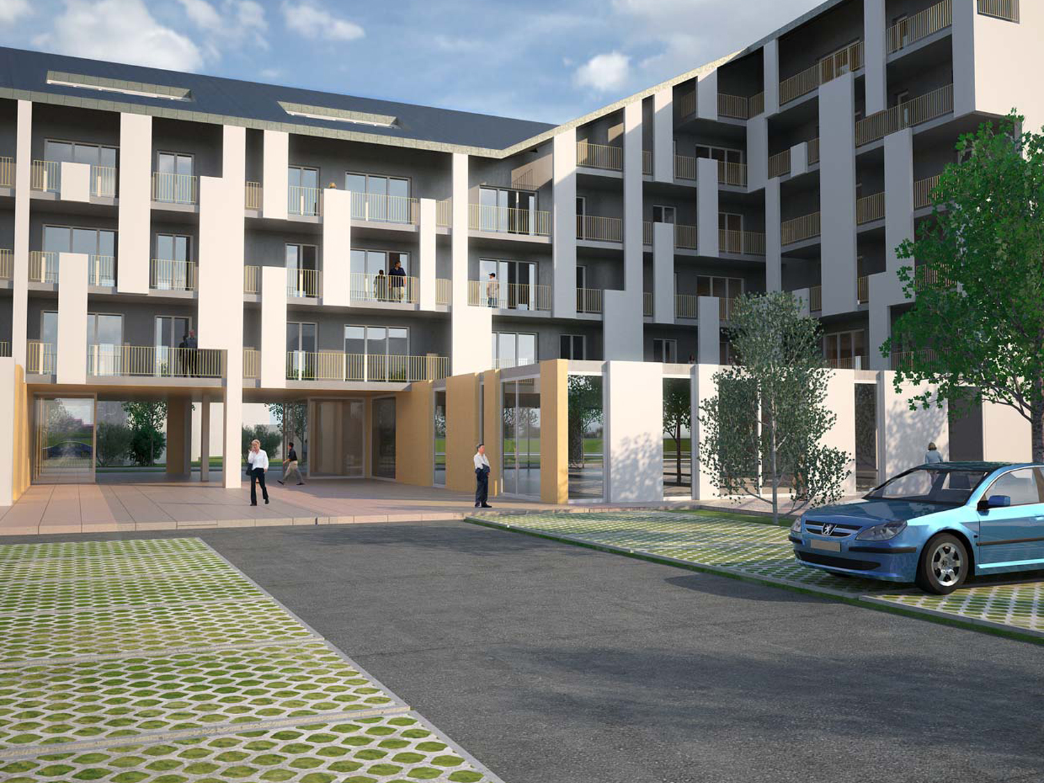 Il bando richiedeva di sviluppare la definizione architettonica degli edifici nel rispetto della sagoma volumetrica prestabilita dallo strumento urbanistico puntuale già approvato. Era richiesto inoltre di risolvere le relazioni con il parco lineare alle spalle del complesso residenziale.