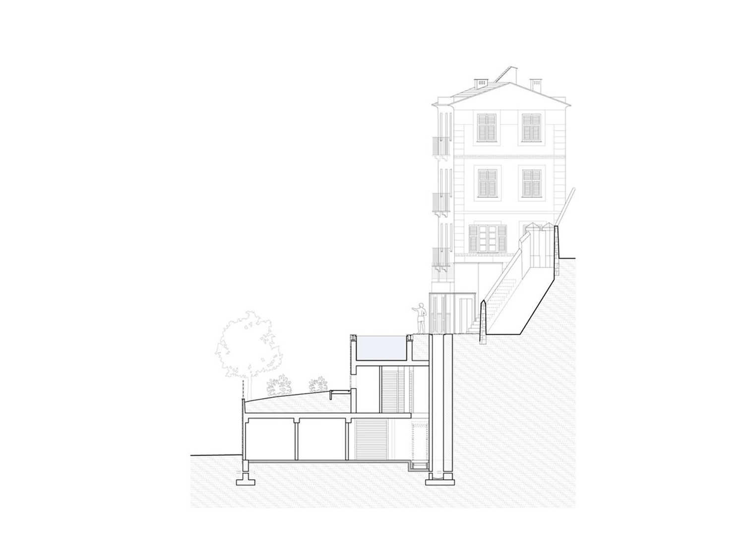 Si è invece intervenuto in maniera più importante nella riqualificazione dell’area pertinenziale con la realizzazione di un’autorimessa interrata, comprensiva di ascensore e piscina condominiale e la ridefinizione degli spazi esterni.
