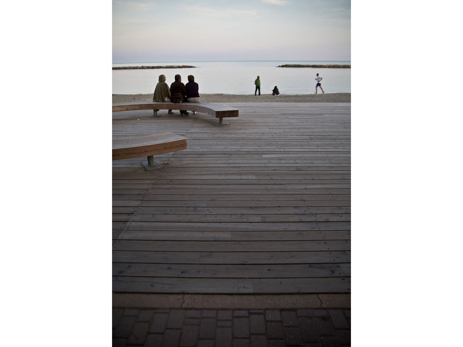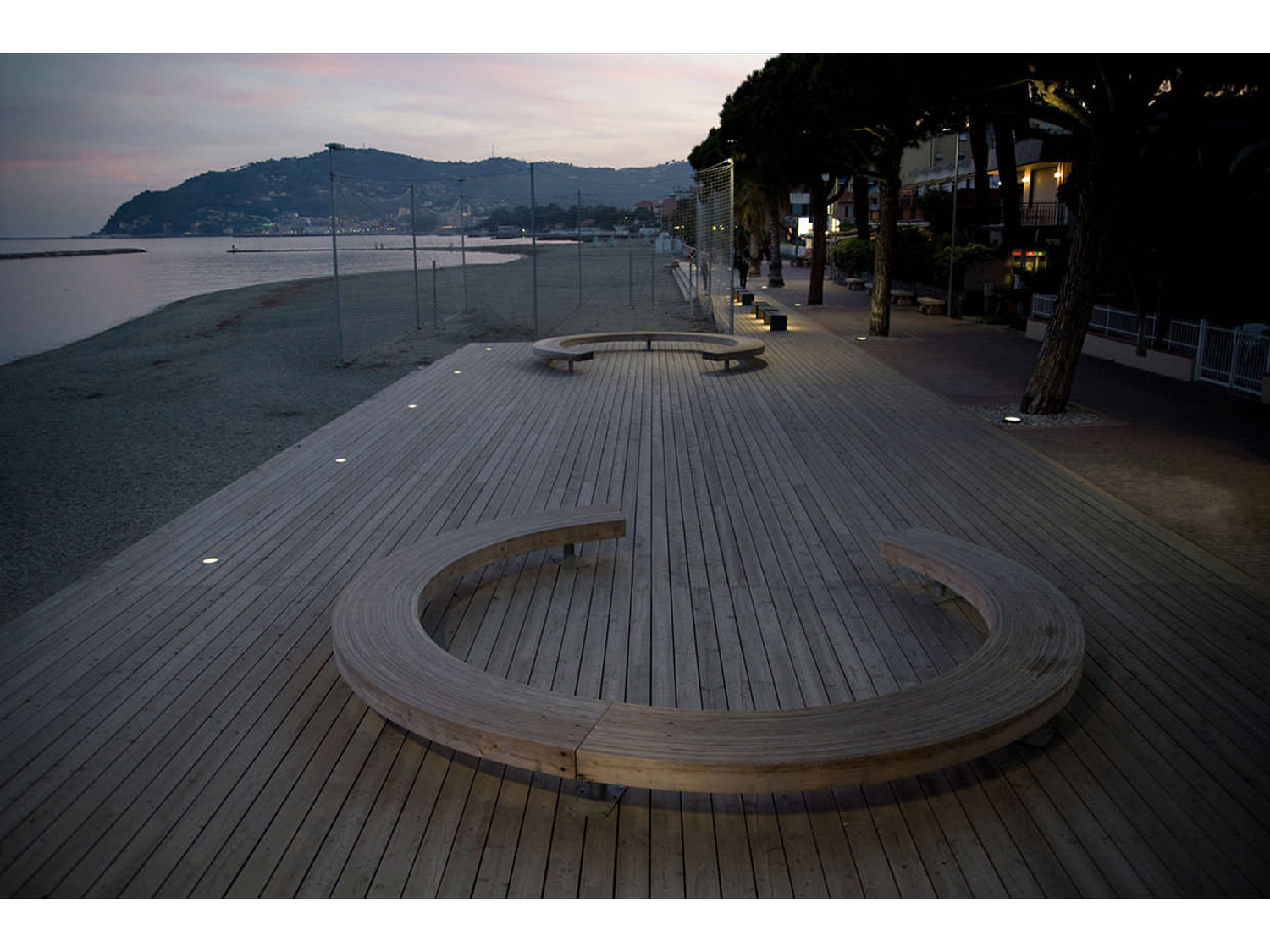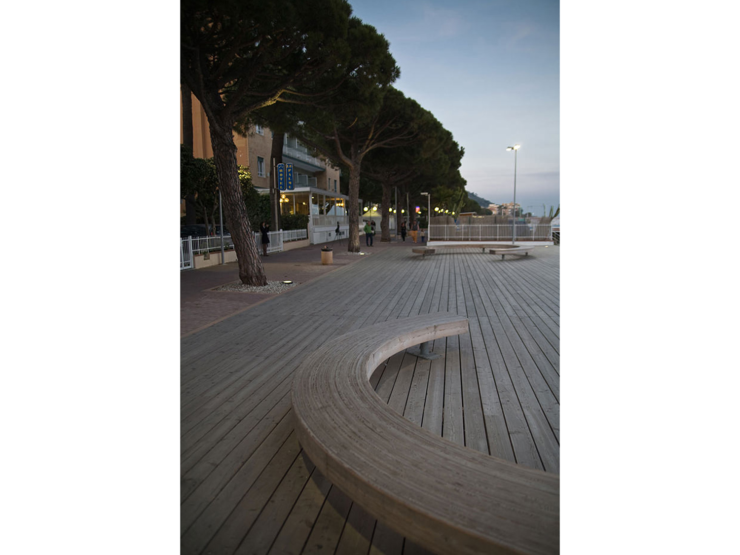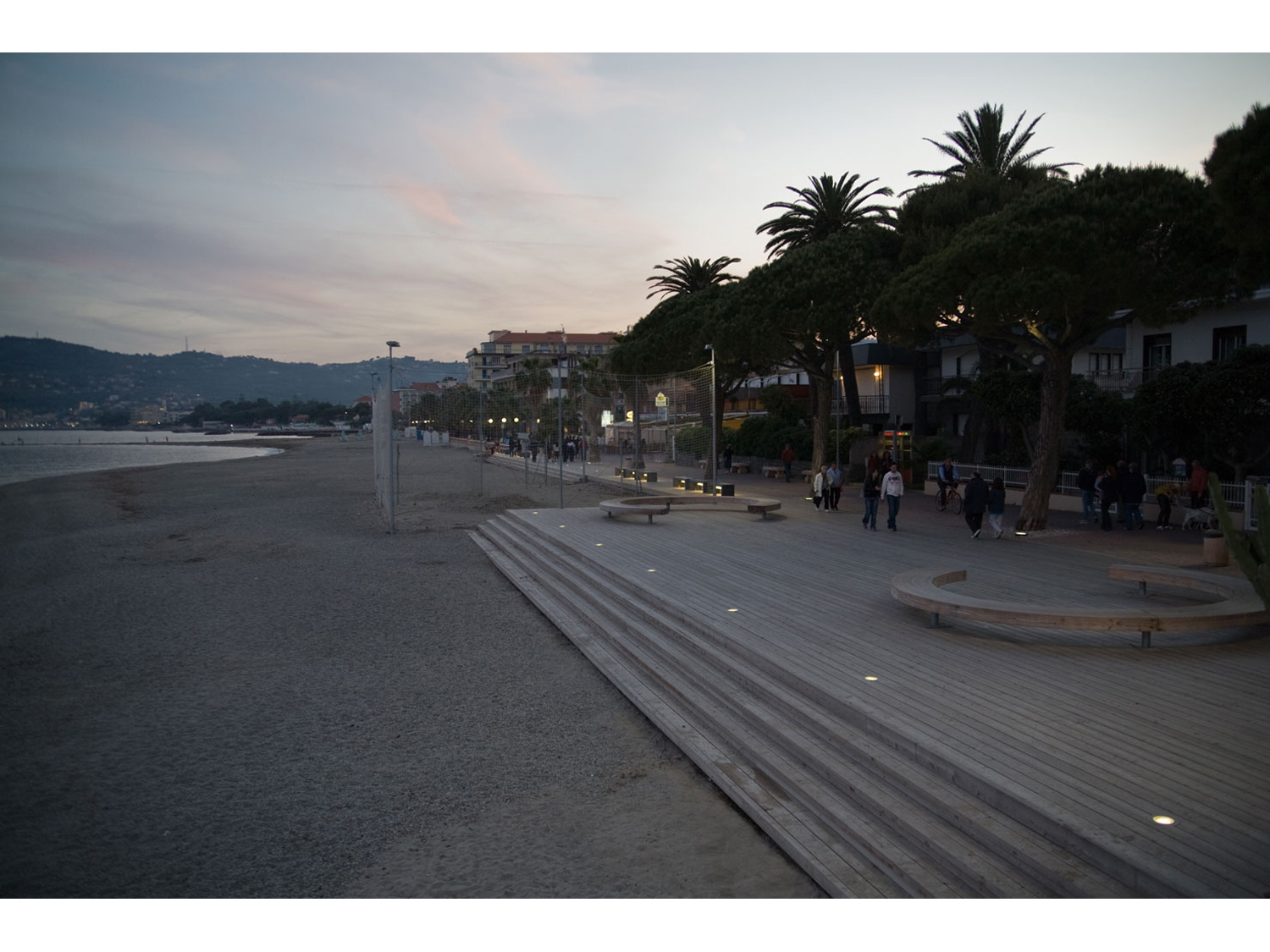 Particolare interesse è rivolto anche all’ampliamento verso la spiaggia che, per ovvie ragioni di disponibilità delle aree e di dislivelli non annullabili tra la passeggiata e la sabbia, il progetto si limita ad affrontare in tre punti strategici del litorale (attraverso la demolizione della balaustra e la realizzazione di gradonature in legno, tra la via della Resistenza e la torre S.Maria, davanti ai giardini dei fiori, in prossimità della spiaggia dello sport).