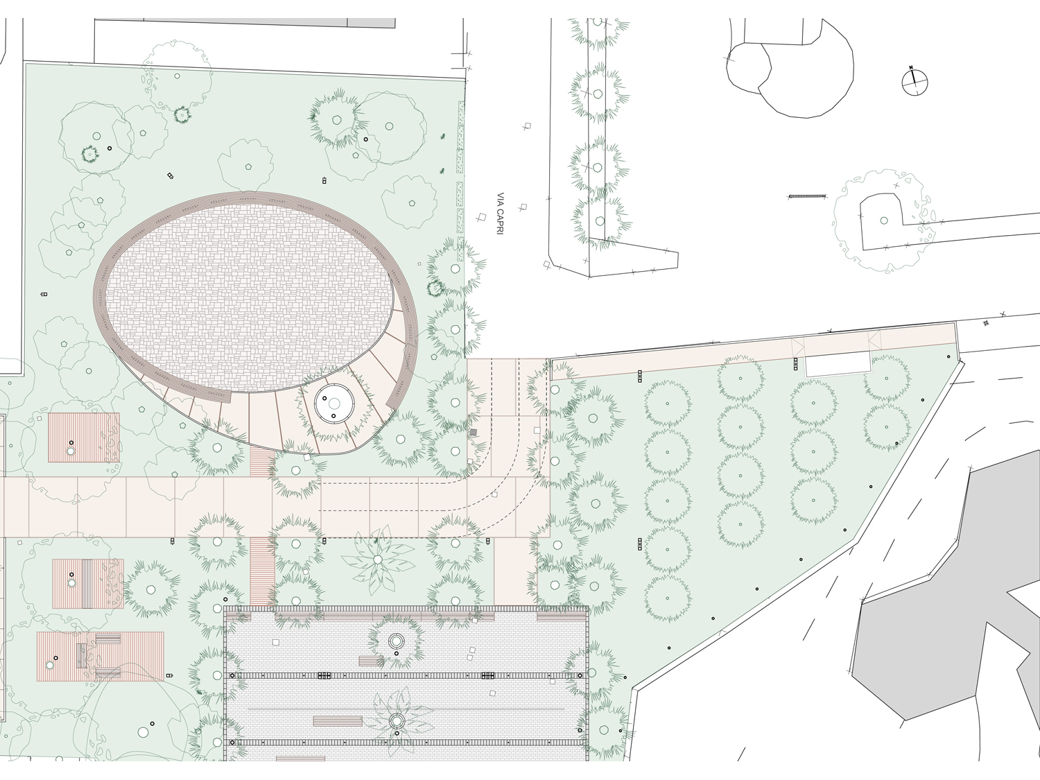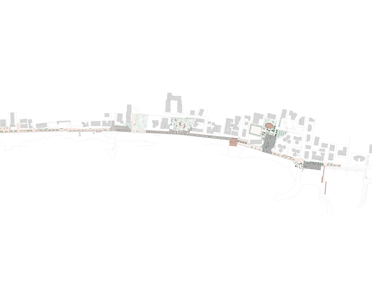 All’interno del sistema di riqualificazione complessivo del connettivo pedonale (e del sistema della sosta), il potenziamento e riqualificazione di alcuni spazi simbolici (e degradati) della passeggiata diviene quindi obiettivo primario del progetto.
