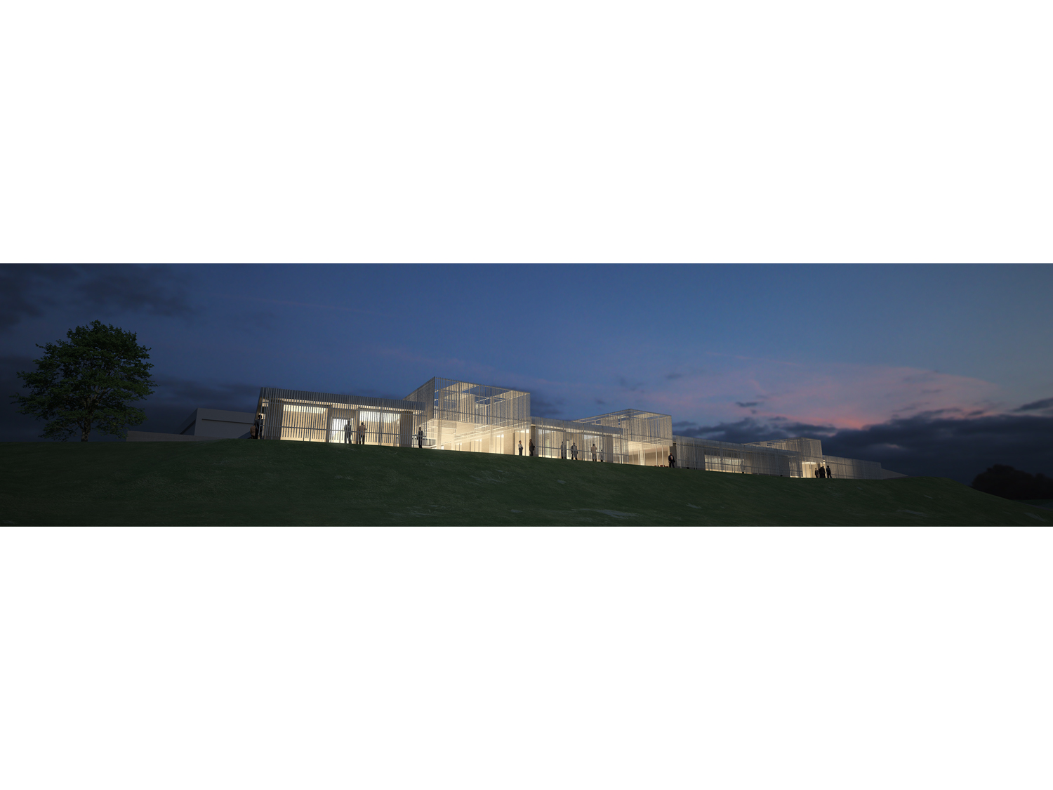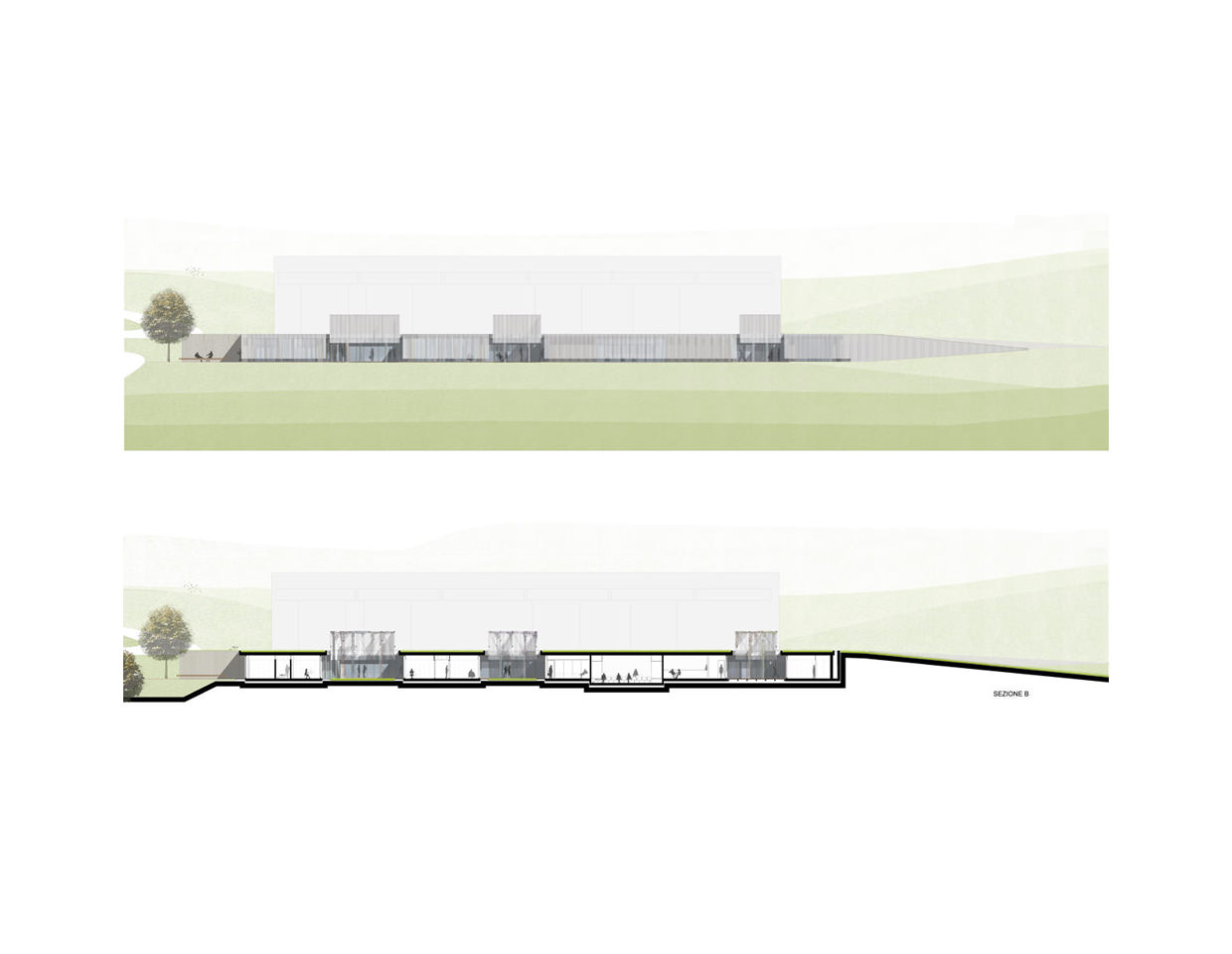 Il progetto analizza le regole insediative del contesto territoriale circostante e le rielabora alla ricerca della massima integrazione con l’ambiente. Intende stabilire una dialettica con la natura che superi la contrapposizione artificiale/mimetico alla ricerca di un livello superiore di articolazione e complessità. E’ in parte dentro e in parte fuori terra, alcune sue parti sono organiche, ma altre chiaramente astratte. Da un lato è come originato dalla natura, dall’altro molto artificiale: vuole rendere compresenti i due diversi modi di rapportarsi al suolo della tradizione costruttiva e articolarli nelle diverse situazioni.