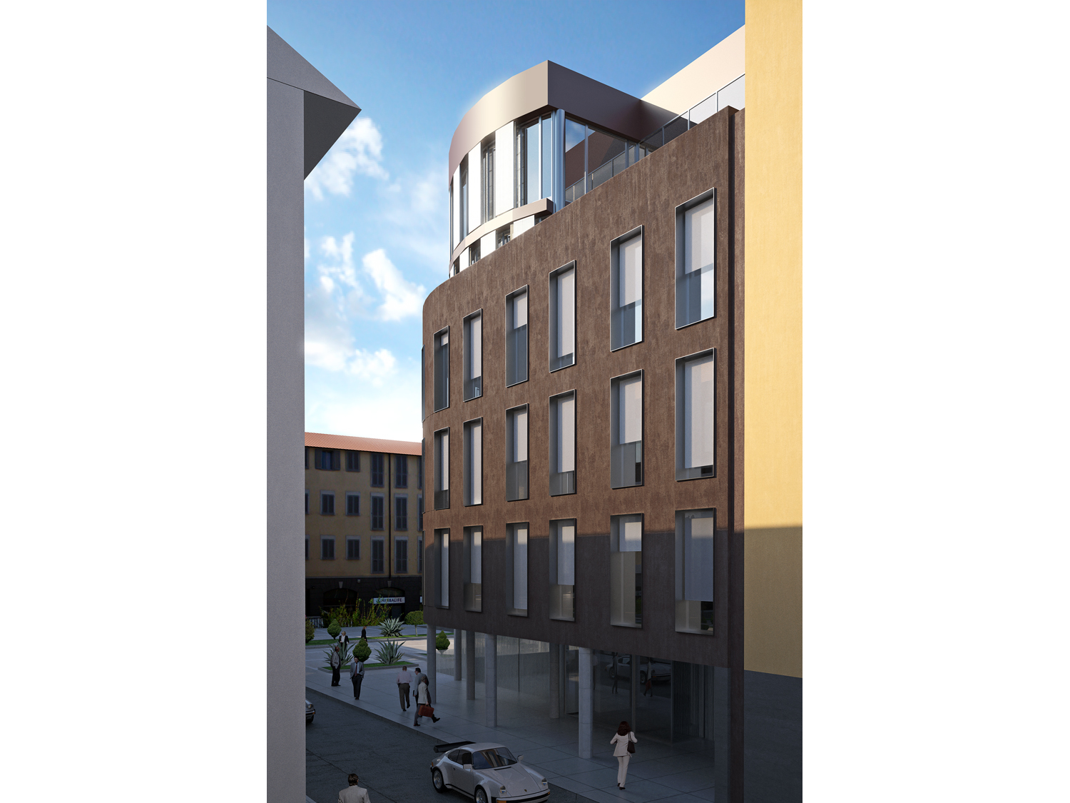 Il tentativo è quello di legare insieme i segnali che sono giunti sul luogo dal passato -seppur recente- e la più attuale contemporaneità rappresentata dai vicini uffici della Regione Lombardia. Allora diventano chiare le considerazioni che hanno spinto a lavorare alla conservazione degli elementi decorativi sulle facciate degli edifici ristrutturati, dove si è rifuggita qualunque compromissione con elementi del linguaggio moderno. Qui emergono con forza le linee verticali che legano la composizione delle bucature in netta contrapposizione con le potenti linee orizzontali che caratterizzano l’andamento dei ballatoi nei cortili interni. Questa contrapposizione è presente anche nei nuovi edifici che risolvono differentemente il medesimo tema: il primo mantenendo viva questa relazione differenziando ancora esterno e interno; il secondo –elemento centrale dell’intervent- affidando alla lenta trasformazione lungo una curva il passaggio dal mondo verticale della strada a quello orizzontale del cortile interno.