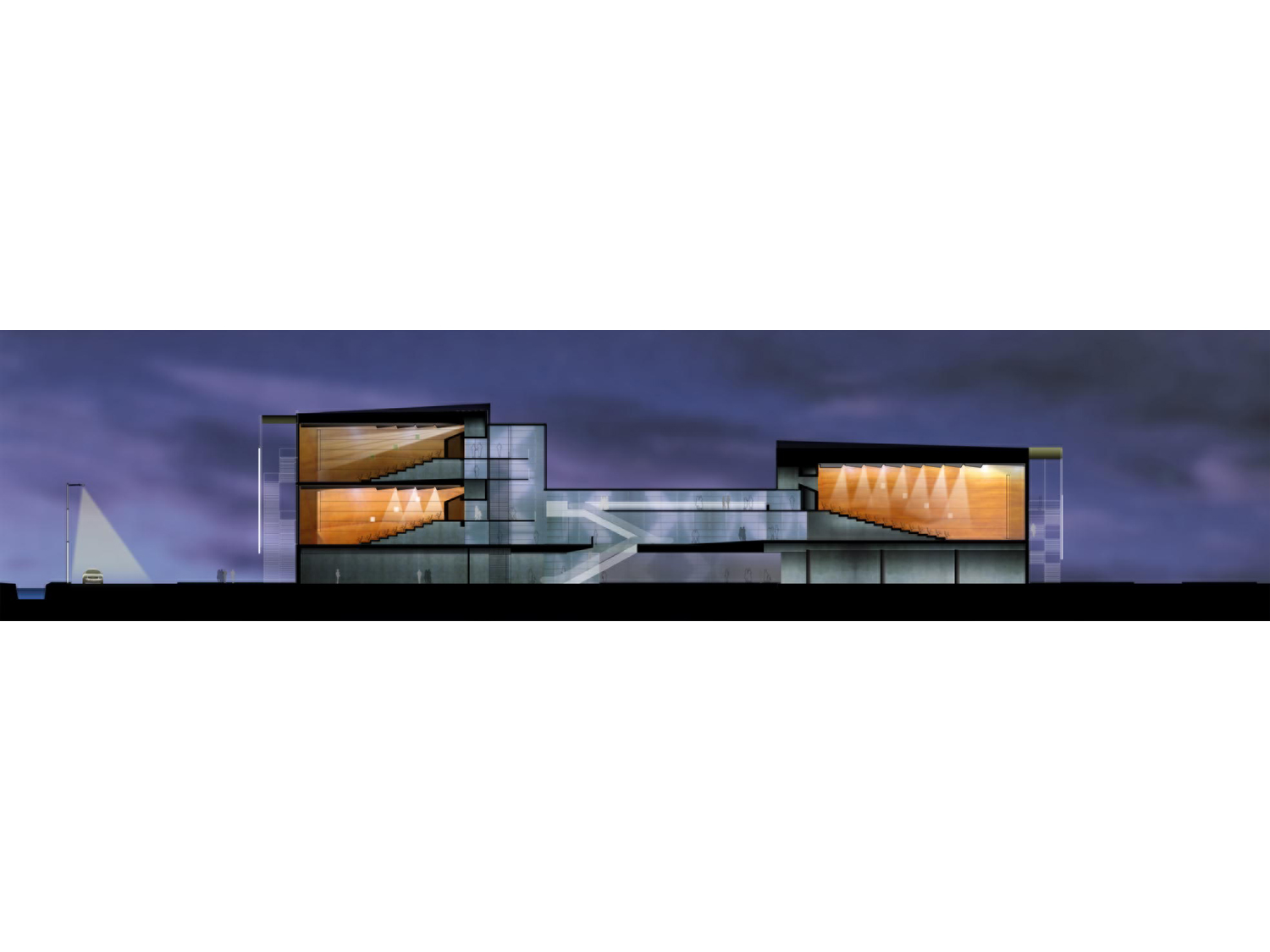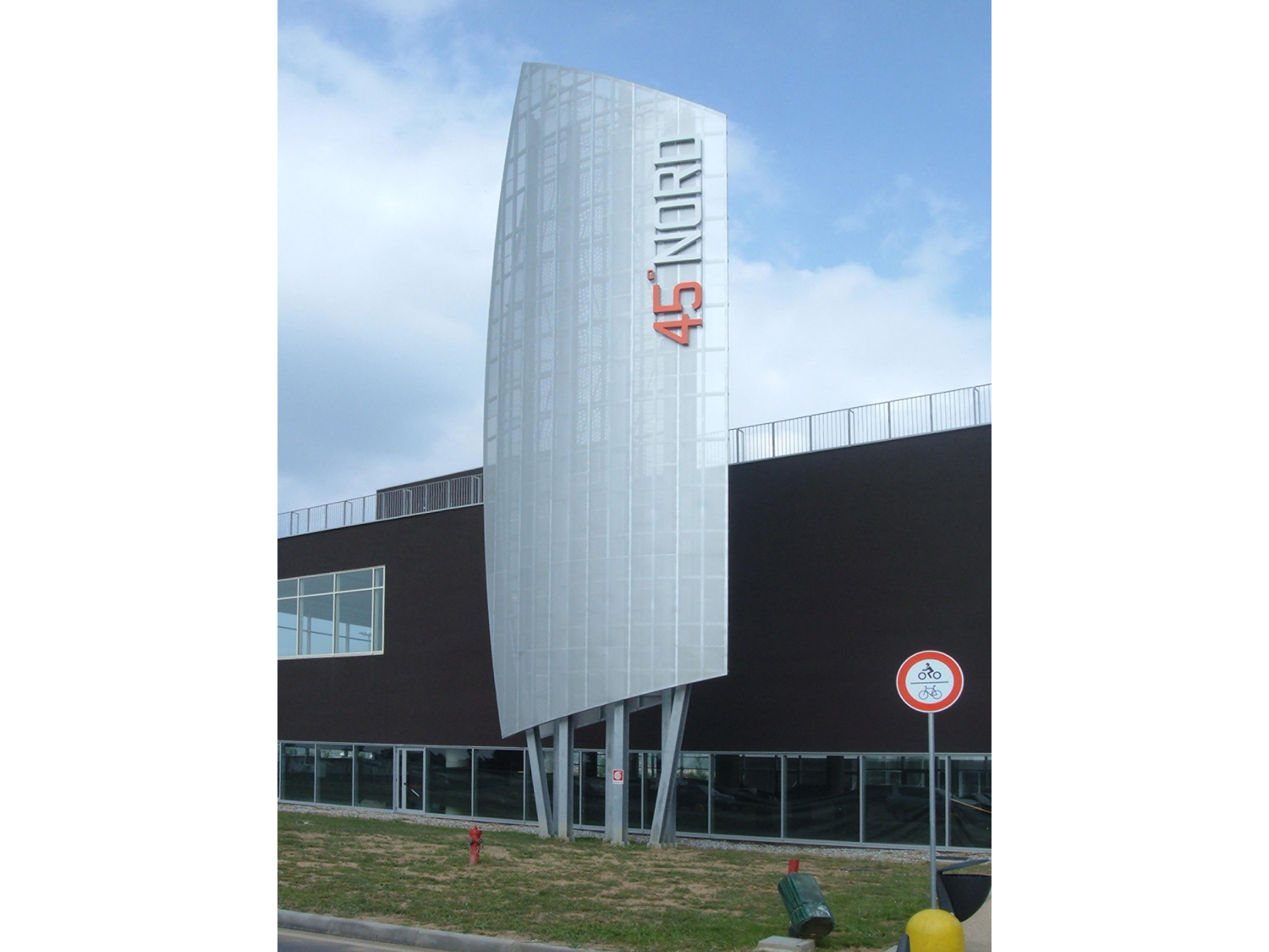 La “tematizzazione” scelta per questo centro dell’intrattenimento è il viaggio e l’esplorazione geografica. Una linea di luce e decoro attraversa l’intero percorso come rappresentazione del 45° parallelo, (latitudine di Moncalieri). Il lungo prospetto su via Postiglione volge a proprio vantaggio le ingombranti scale di sicurezza del cinema multisala, per divenire un fronte di comunicazione visiva ed è inviluppato da una superficie continua, grigliata o microforata in metallo, predisposta a ricevere l’illuminazione di ambiente o un sistema di proiezione con animazioni che cambiano soggetto nel corso del tempo o in occasione di particolari eventi.