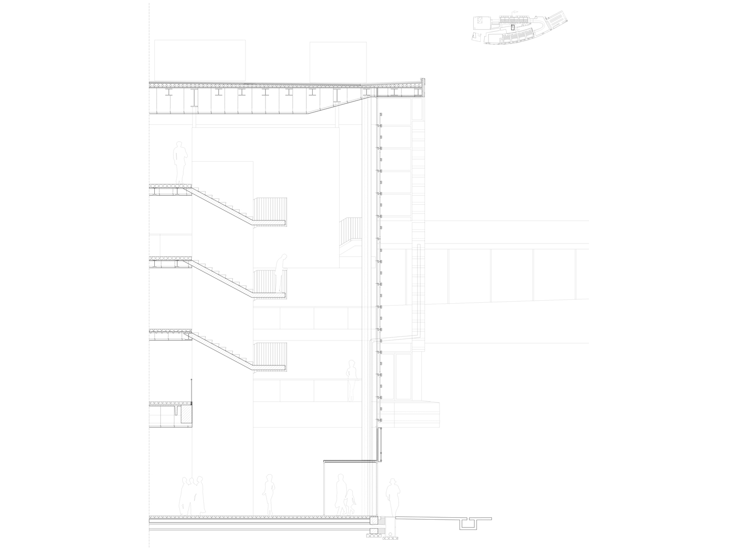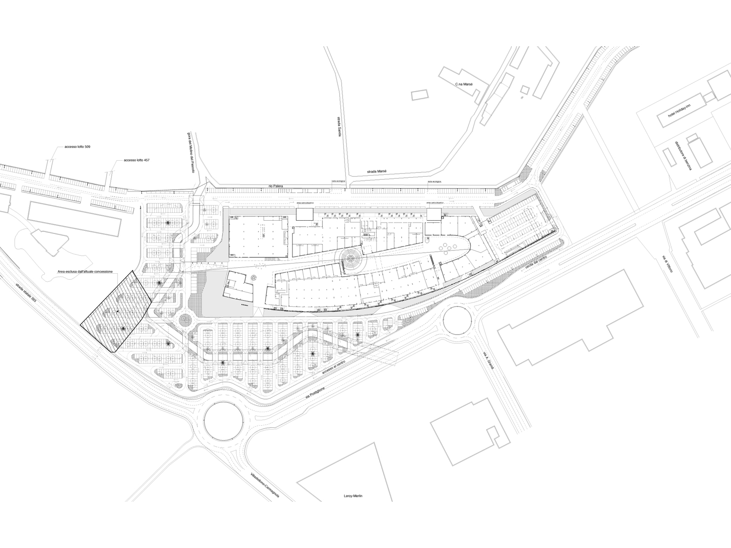 Si tratta di un grande edificio polifunzionale, frammentato in diversi volumi. L’impianto planimetrico dell’edificio è caratterizzato da una grande promenade sulla quale si affacciano gli spazi commerciali, la palestra, lo spazio espositivo, il cinema multisala ed i ristoranti tematici posti all’estremo nella court food.